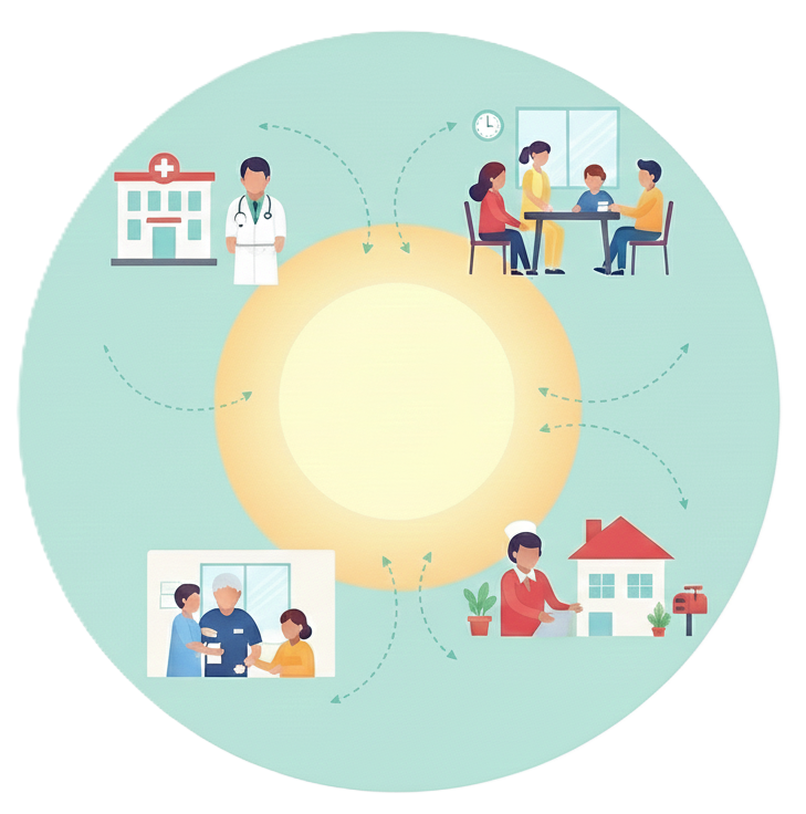 外来診療だけでなく、リハビリを行う「精神科デイケア」や、生活の場を支える「訪問看護」と密に連携。院内での治療にとどまらず、地域生活そのものを支えるアウトリーチも可能です。