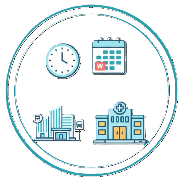 天六院は駅出口の目の前、本院は静かな環境と、ニーズに合わせて選べます。また、土曜日の午後診療や夜間診療(水曜)も実施しており、お仕事や学校帰りでも無理なく通院を継続できます。